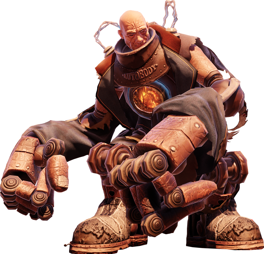 Handymen, a creation/invention that debuted in Columbia, and that they were made from taking disabled, sickly, or severely injured citizens and semi-mutilating them; that there are a lot of hideous side-effects and ethical issues involved.